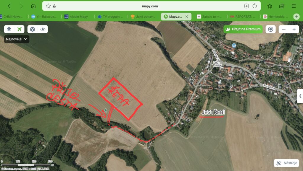 Mapa, kde je letos ke sklizni krmná řepa (pozemek je v místní části Jestřebí).